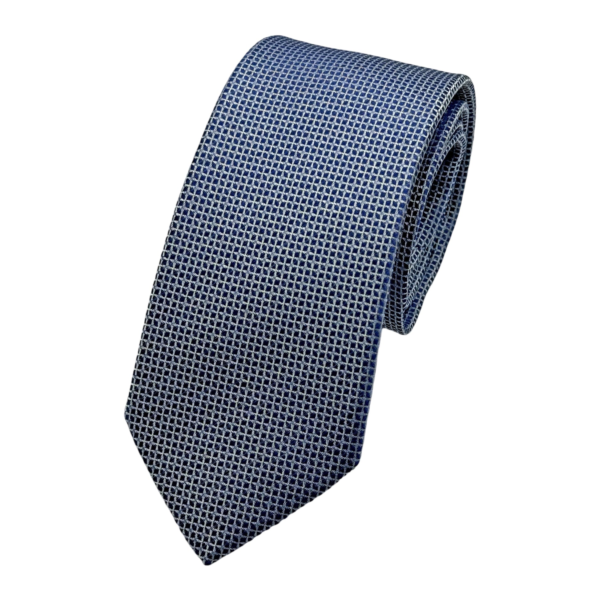 Description: Italian Mens Silk Subtle Geometric Weave Neck Tie in Blue