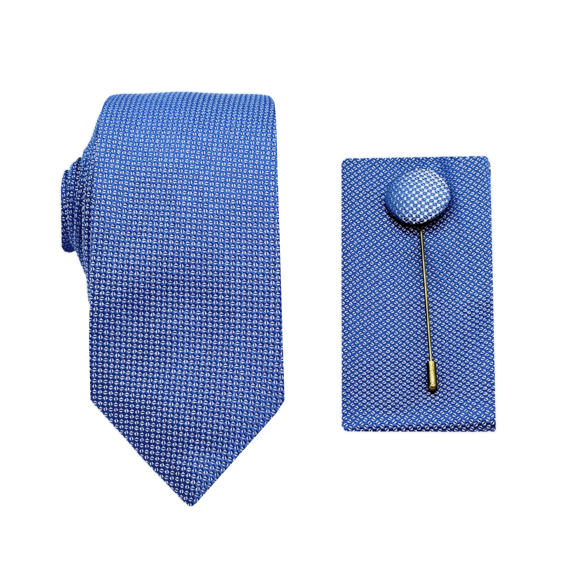 James Adelin Luxury Textured Weave 6.5cm Width Tie/Pocket Square/Lapel Pin Combo Set in Blue