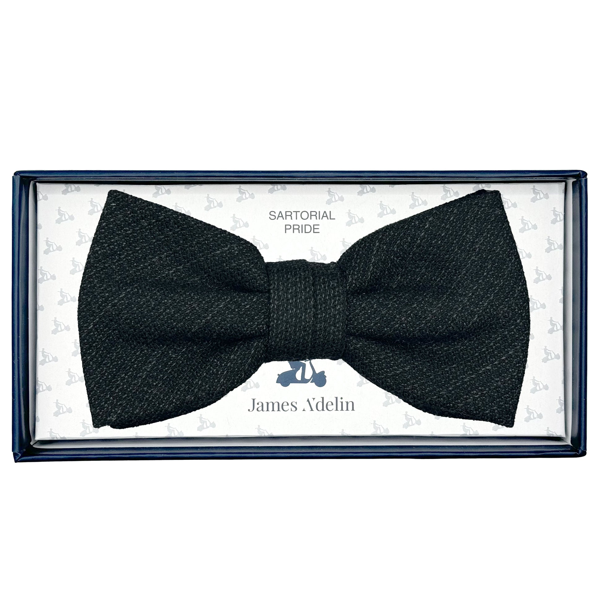 Description: Mens Wool Blend Textured Weave Bow Tie in Charcoal Marle