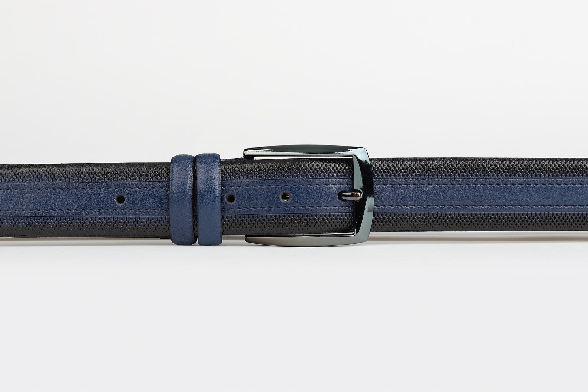 James Adelin Mens Leather Belt Dark Blue Subtle Grid Edge