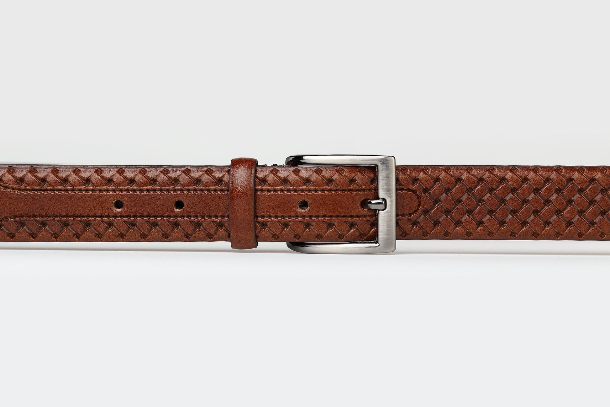 James Adelin Mens Leather Belt Dark Tan Platted Weave