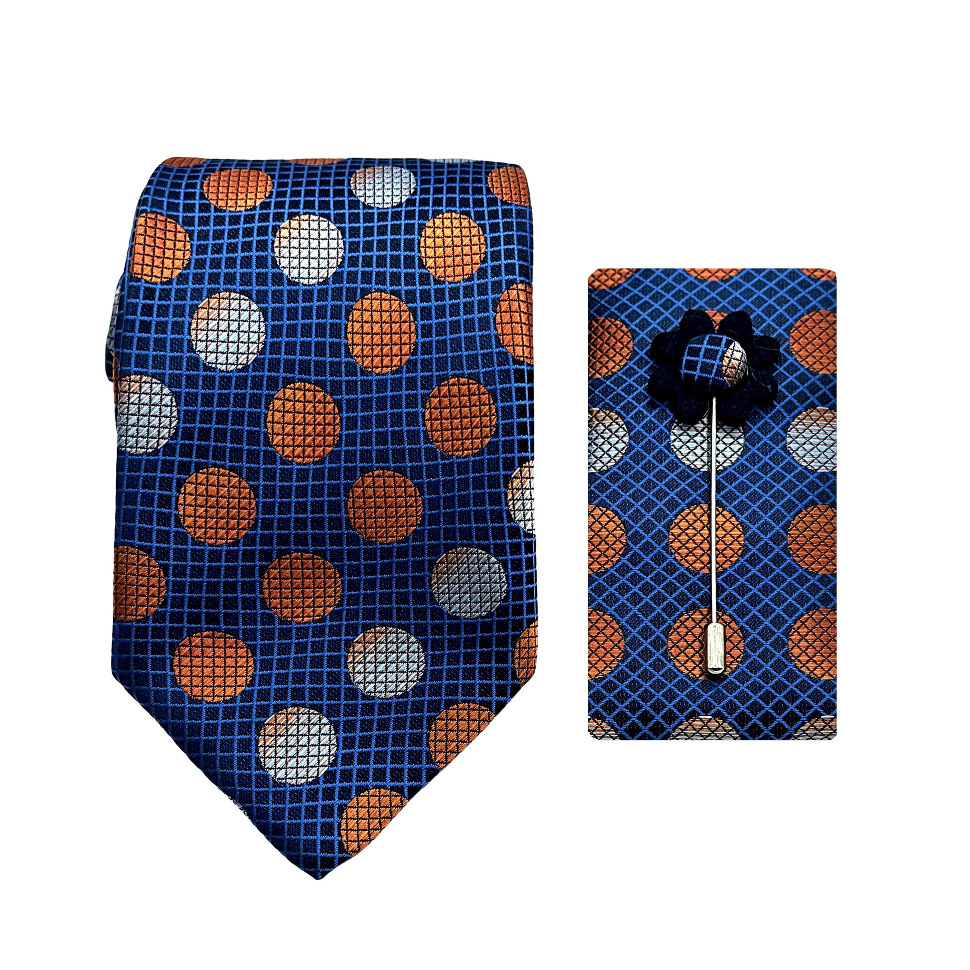 James Adelin Luxury Geometric Spotted 7.5cm Width Tie/Pocket Square/Lapel Pin Combo Set