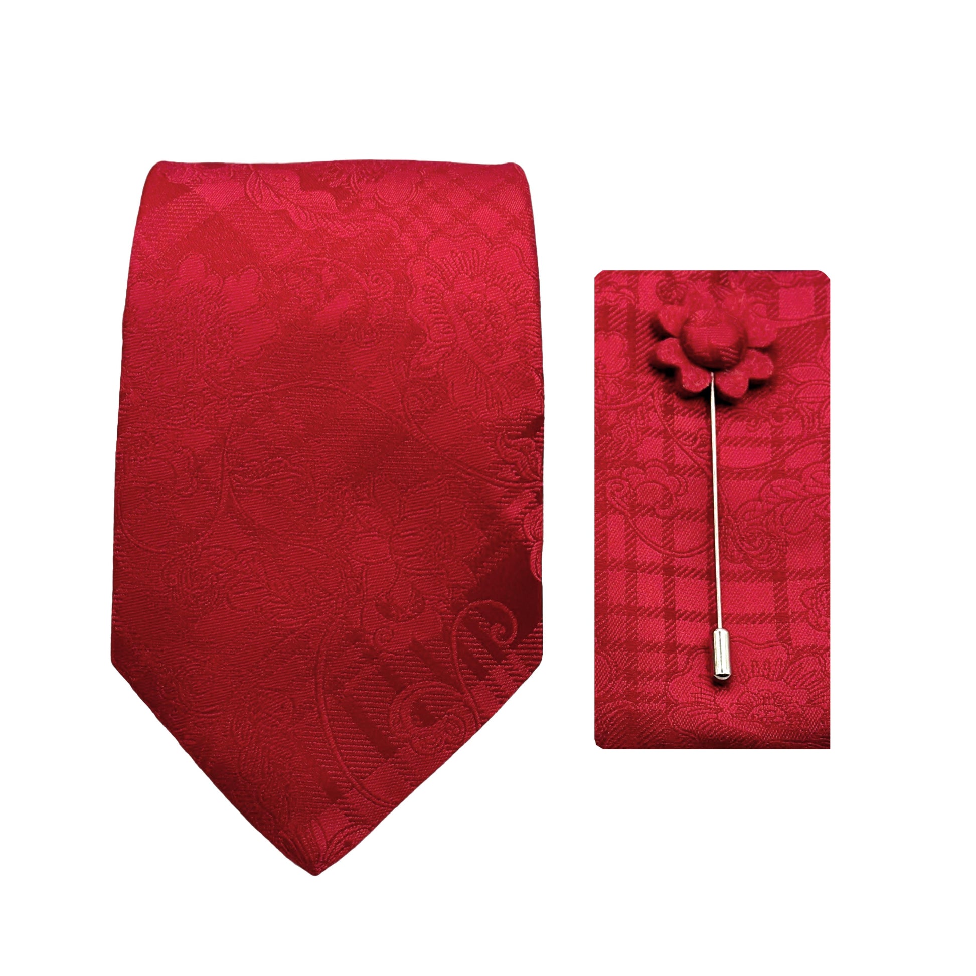 James Adelin Luxury Subtle Floral Check 7.5cm Width Tie/Pocket Square/Lapel Pin Combo Set