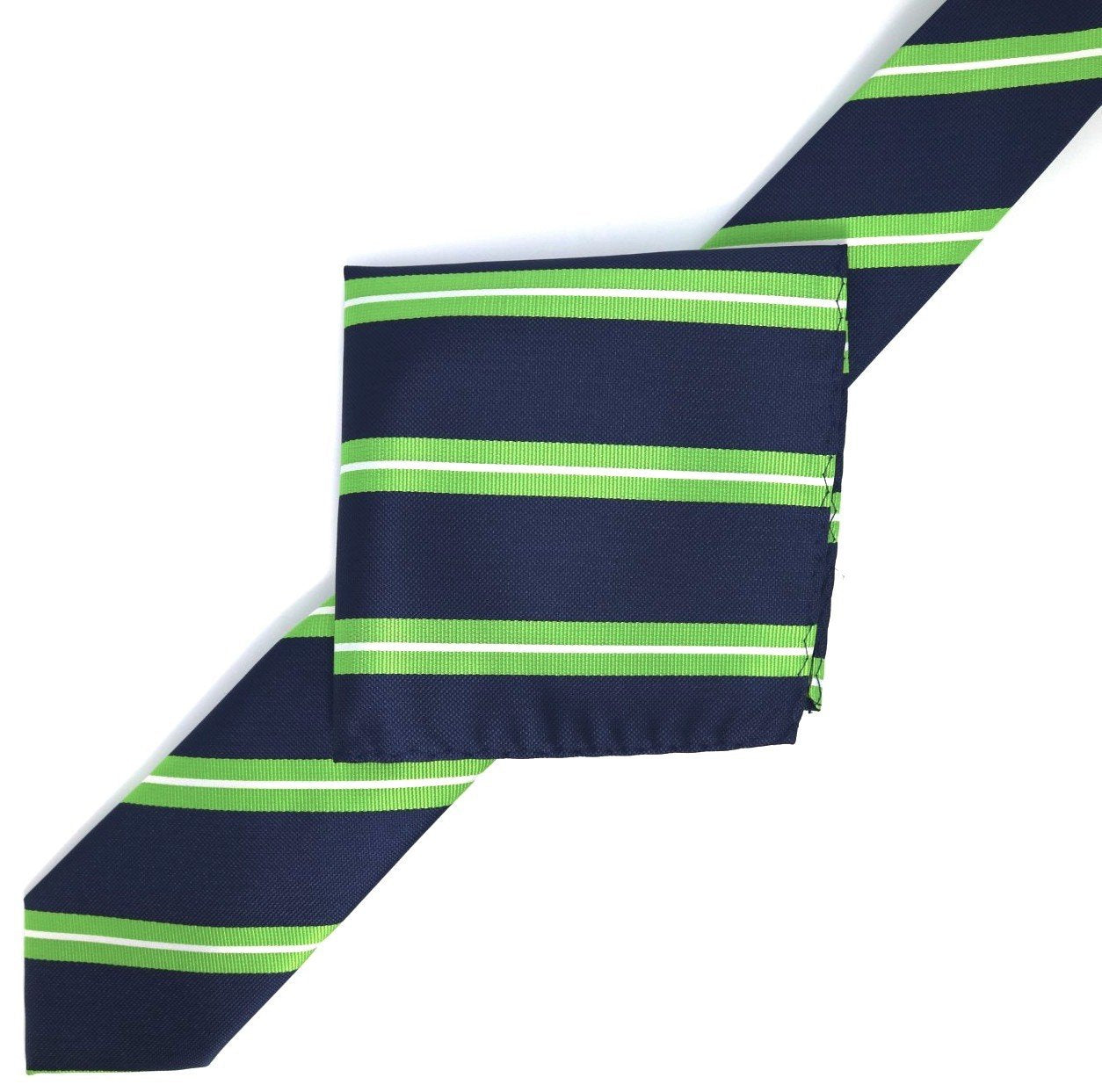James Adelin Luxury Regimental Stripe Pocket Square in Navy, Lime Green and White