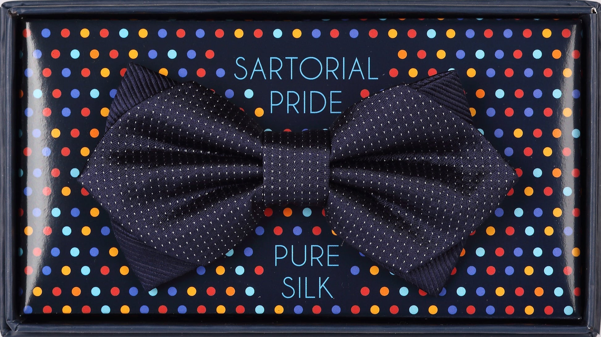 James Adelin Luxury Pure Silk Combo PinPoint Satin/Twill Weave Bow Tie in Navy