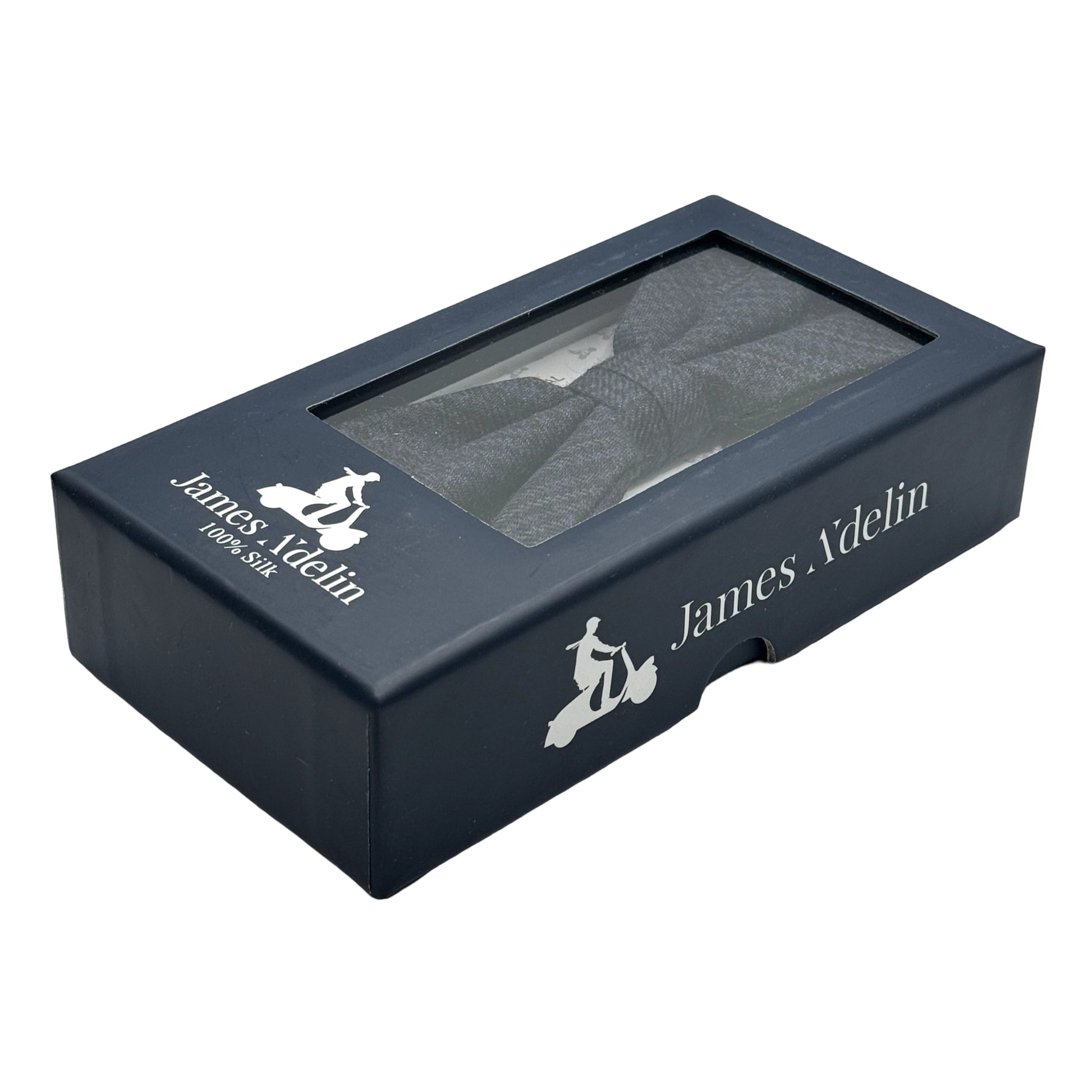 Description: Mens Luxury Wool Blend Textured Check Weave Bow Tie in Navy Marle