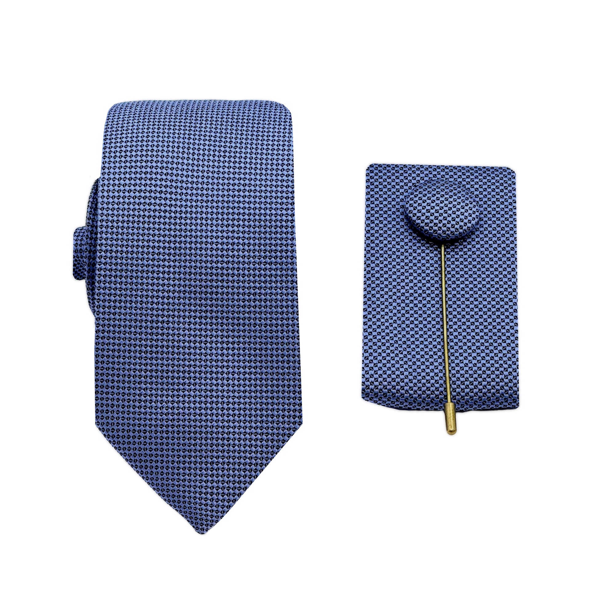 James Adelin Luxury Textured Weave 6.5cm Width Tie/Pocket Square/Lapel Pin Combo Set in Steel Blue