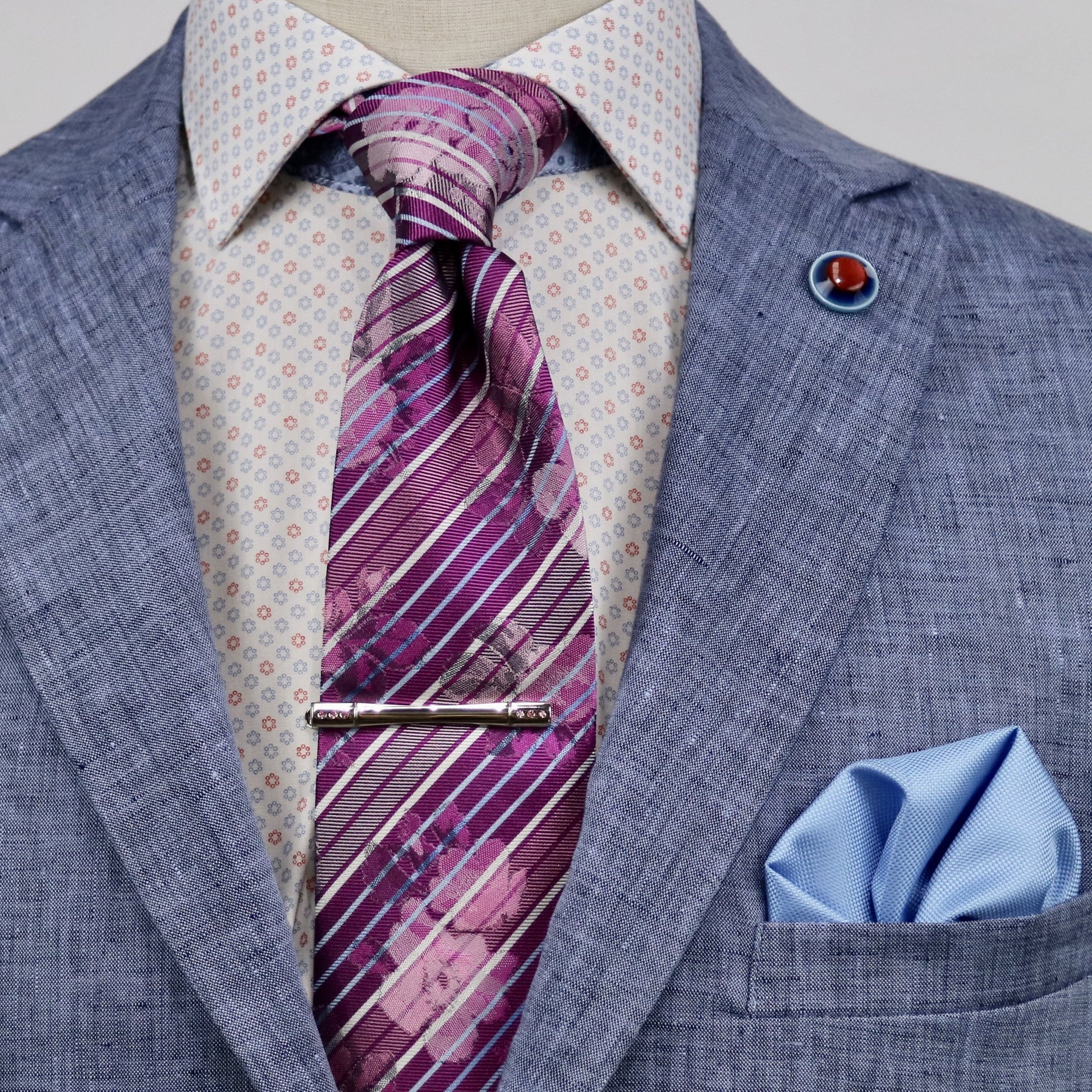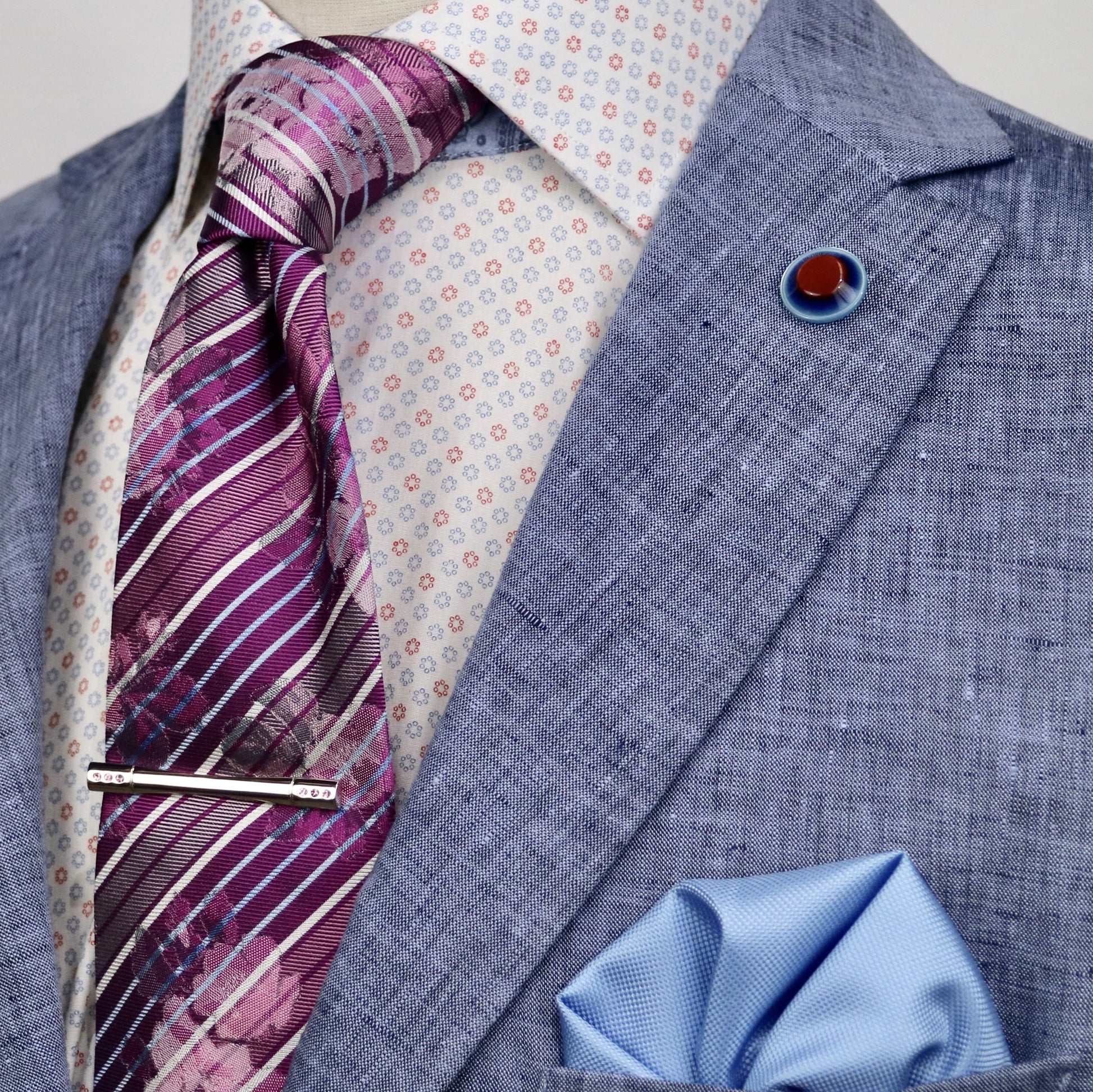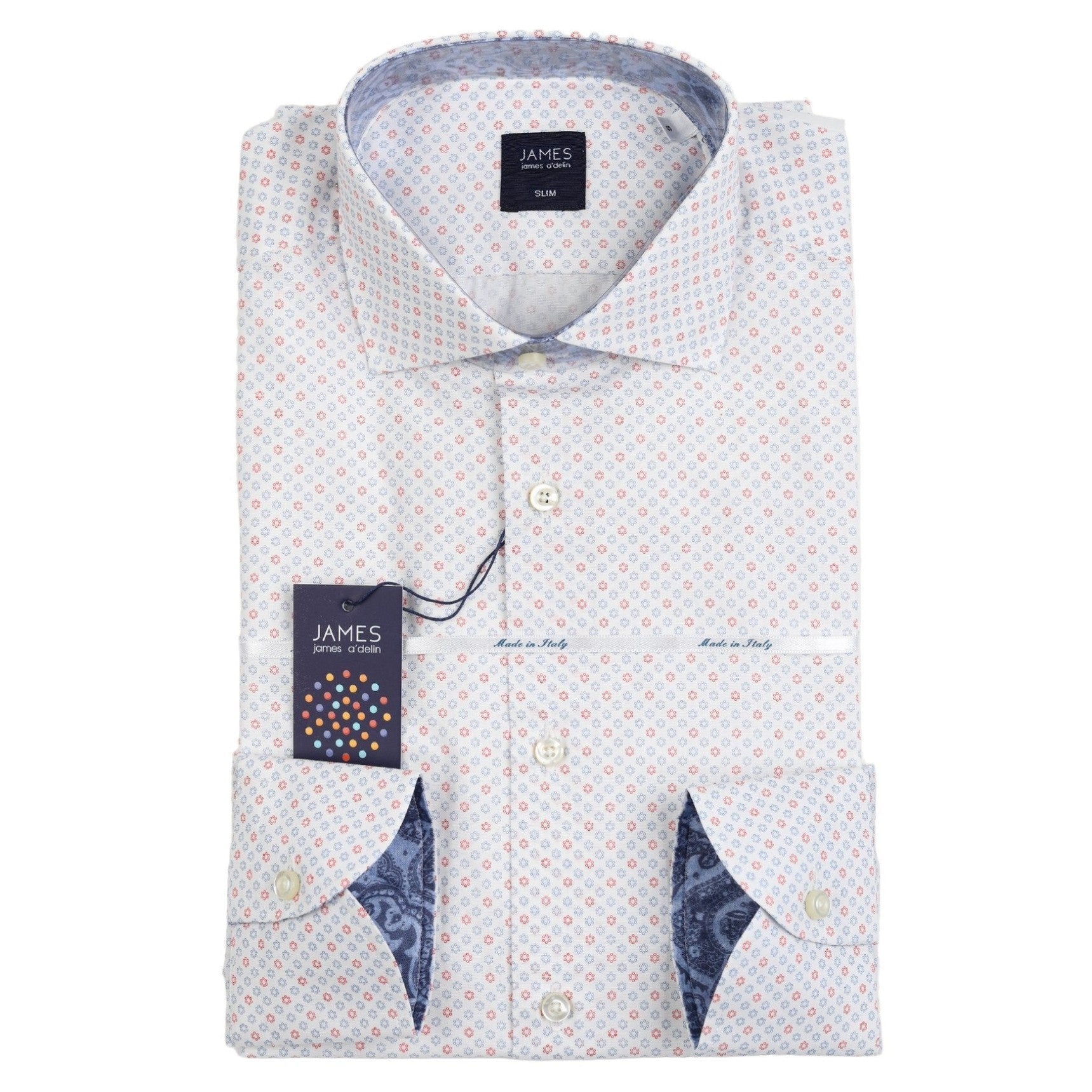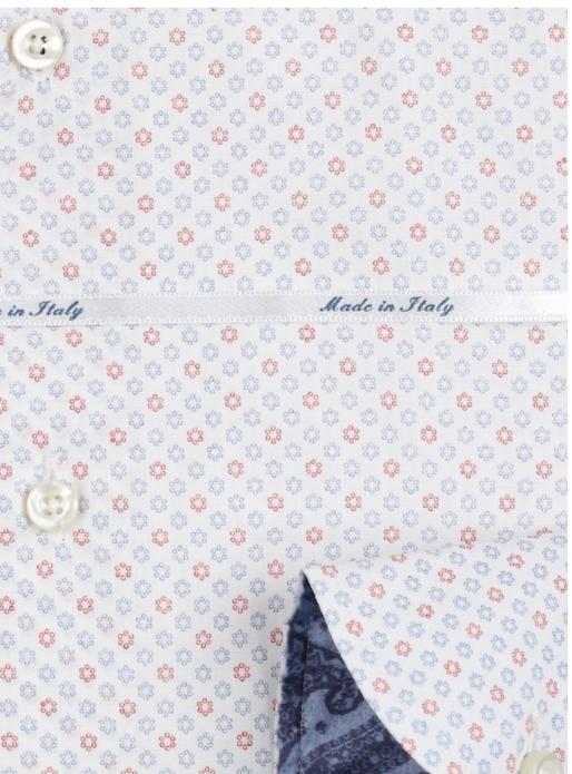 Mens Long Sleeve Shirt in White, Red and Blue Geometric